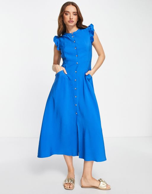 Whistles Frill Sleeve Button Down Midi Dress In Blue Asos